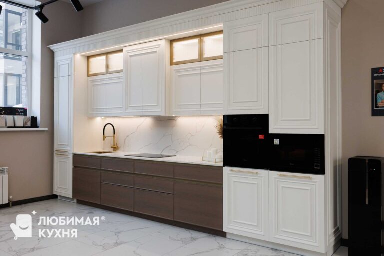 Стиль: Дизайнерские, Классические кухни, Кухни в стиле арт деко, Кухни с витриной, Кухни с пеналом, Кухни с фрезеровкой, Кухни со столешницей из камня, Нео-классика